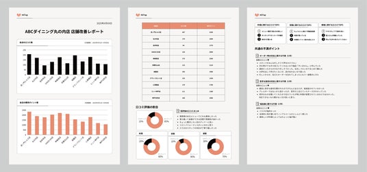 HiiTapにより、1ヶ月分のレビューデータを集約し、店舗の強みや課題を一目で把握できるビジュアルレポートを作成することができます。特に、複数店舗を運営する企業にとっては、全店舗のパフォーマンスを比較しやすい機能です。
