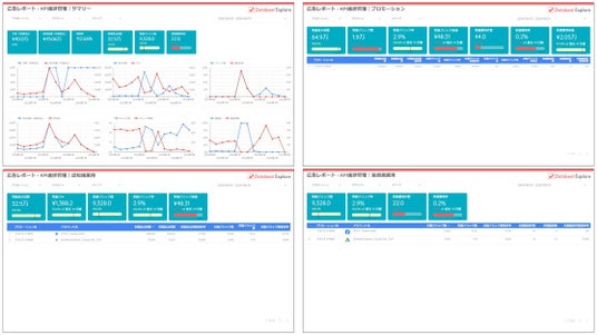 表示回数やクリック数など、認知施策用のKPIに対するアカウント毎の進捗を表示