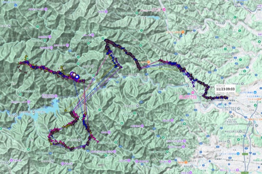 ココヘリは軌跡データもあるため、例えば、往復区間での移動方向の特定など、直前の行動範囲が把握しやすいです。