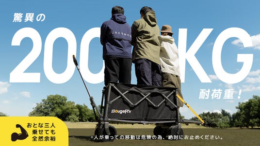 開始たったの3日間で500万円突破!伝説級の200kg耐荷重を誇る「BougeRV 楽GoWagon」が世界を揺るがす超絶大ヒット!