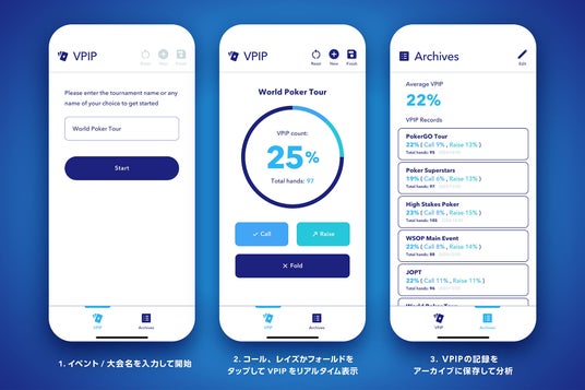株式会社VIZORA(所在地:静岡県静岡市、代表取締役:山田 清貴)は、新たにポーカーのプレイをサポートするスマートフォン向けアプリ「VPIP Counter」をリリースしました。このアプリは、ポーカー愛好者や競技プレイヤーにとって重要な指標である「VPIP」を簡単に記録し、分析することができます。VPIP Counterを使えば、プレイヤーのアクションを素早く記録し、統計をリアルタイムで表示可能。これにより、自身や他のプレイヤーのプレイスタイルを正確に把握し、戦略を立てやすくなります。また、使いやすいインターフェースと直感的な操作で、初心者からプロまで幅広く活用できます。