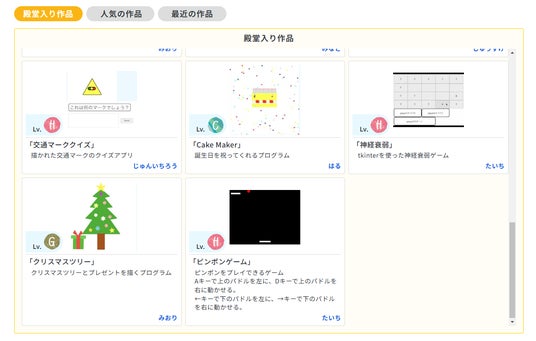 ちゃんプロ上で公開されたプログラムの中で特に優れたものを運営がピックアップし、“殿堂入り”として紹介しています。