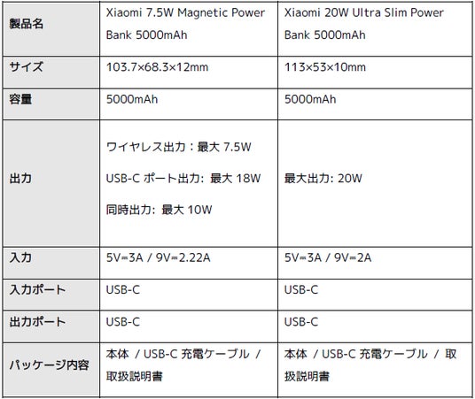 シャオミ・ジャパンが「Xiaomi 20W Ultra Slim Power Bank 5000mAh」「Xiaomi 7.5W Magnetic Power Bank 5000mAh」を発売開始