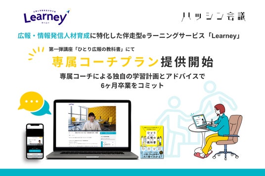株式会社ハッシン会議(本社:東京都港区、代表取締役:井上千絵)は、広報・情報発信人材育成に特化した伴走型eラーニングサービス『Learney(ラーニー)』において、新たに「専属コーチプラン」の提供を開始します。