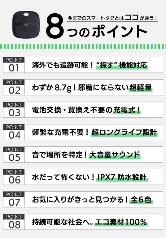 iOS対応の何度も使える充電式紛失防止タグ【BOOMTAG】がGREEN FUNDINGにて限定予約スタート