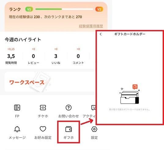 特典をゲットできるギフトカードホルダー ネオページは執筆する&読書することで、報酬をゲットできるキャンペーンを不定期で実施しています。そこで入手した報酬は簡単に確認&受け取りができます。