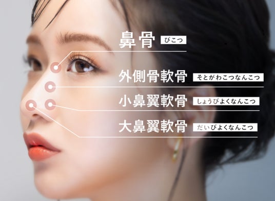 左右から挟み込んで、圧を加えながら固定することでスマートな鼻の印象に。