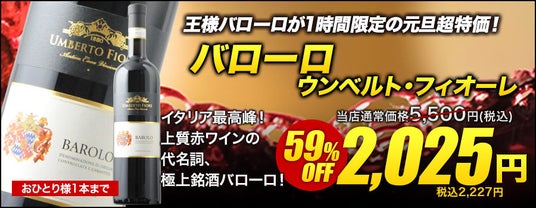 【ワインショップソムリエ 初売り TIME SALE】 1/1元日深夜0時から1時間限定でワインの王様バローロが2,025円、有名ワイン誌高評価のスパークリングワインが2,025円