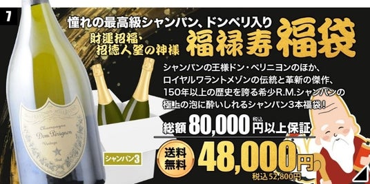 また、2024年12月26日(木)~2025年1月9日(木)の期間は、同オンランストアにてシャンパーニュやキャビアが当たる豪華プレゼント企画や、七福神になぞらえた豪華ワイン福袋、そのほか最大59%OFFとなる特別価格のワインが勢揃いする「年越し・新春 初売りセール」を同時開催いたします。