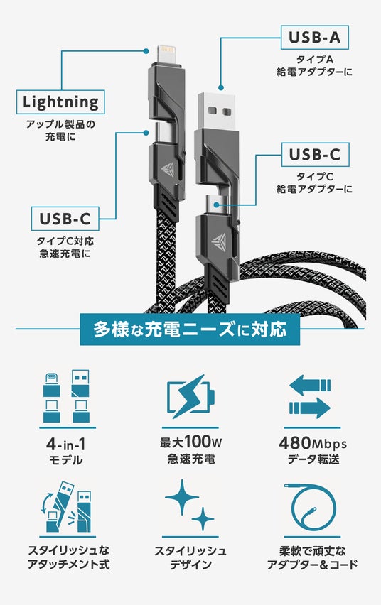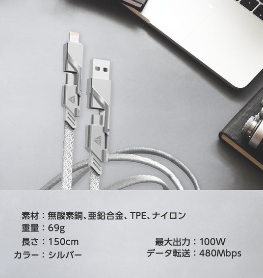 【プロジェクト名】:毎日の充電トラブルはこれ1本で解決!100W急速充電対応の4-in-1ケーブル