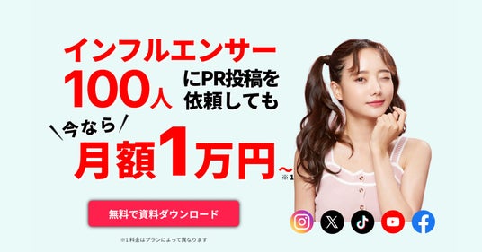 インフルエンサー100人以上にPR投稿依頼をしても、月額1万円~!
