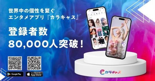カラフルキャスティング株式会社(本社:東京都渋谷区、以下『カラキャス』)は、世界中の個性を繋げるエンタメアプリ『カラキャス( https://colorfulcast.com )』において、登録者数が80,000人を突破したことをお知らせいたします。