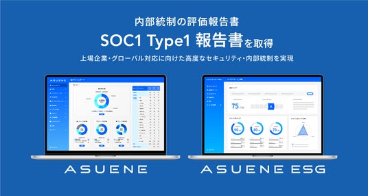 「ASUENE」と「ASUENE ESG」、内部統制の評価報告書「SOC1 Type1 報告書」を取得