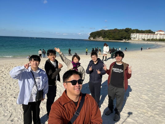 白良浜で集合写真