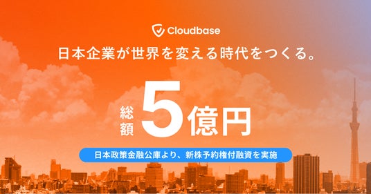 Cloudbase、日本政策金融公庫より5億円の新株予約権付融資を実施