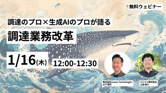 ジンベイ、Leaner Technologiesと1/16(木)12:00-12:30にて「調達のプロ×生成AIのプロが語る調達業務改革」ウェビナーを開催