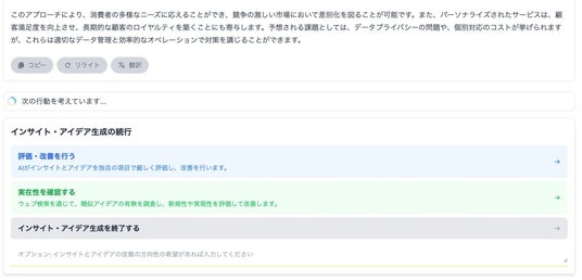また、生成したアイデアの市場での実現可能性を検証する機能も備えており、アイデアの質を担保します。