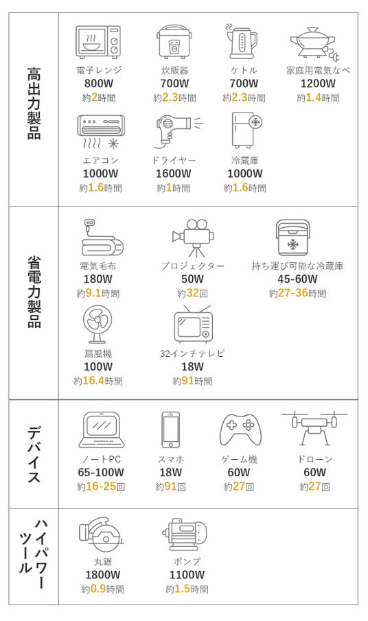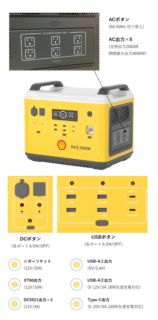 定格出力2000W(瞬間最大出力4000W)に対応し、スマホの充電から瞬間的に高出力を要するドライヤー、季節家電の電気毛布など、ほとんどの家電に対応しています。