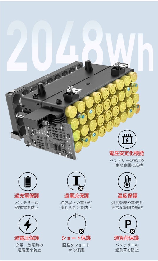 大容量2048Wh / リン酸鉄リチウムイオンバッテリー / 16出力ポート搭載