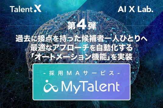 株式会社TalentX(本社:東京都新宿区、代表取締役社長:鈴木貴史)は2025年1月、AIと自動化で日本企業の採用変革を加速させる新組織「AI X Lab.」より第4弾機能リリースとして、採用MAサービス「MyTalent」に過去に接点を持った候補者一人ひとりへの最適なアプローチを自動化する「オートメーション機能」を実装しました。