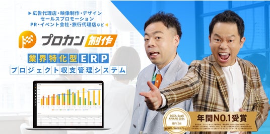 「プロカン制作」は、イベント会社・広告代理店・映像制作などを行う企業の、プロジェクト収支管理において「見やすい」「使いやすい」「リーズナブル」を突き詰めた業界特化型ERPです。プロジェクトごとの予算計画から実績までの経過を管理し、月次収支を明確化することができます。