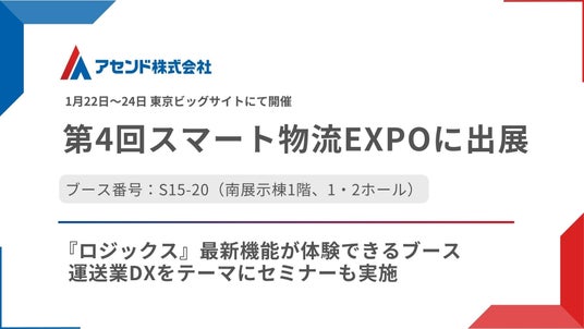 物流DXを推進するアセンド株式会社(本社:東京都新宿区、代表取締役:日下瑞貴、以下「当社」)は、1月22日~24日に東京ビッグサイトで開催される「第4回スマート物流EXPO」に出展いたします。