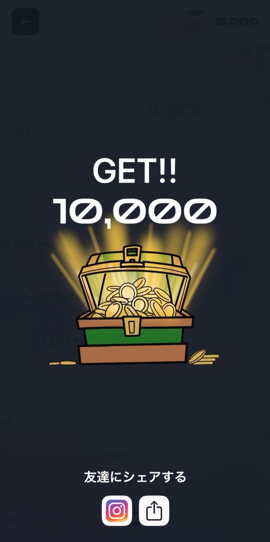 - 宝箱を開けてポイントをゲット!宝箱を見つけて開けると、ランダムでポイントが獲得できます。一度開けた宝箱はマップから消えます。