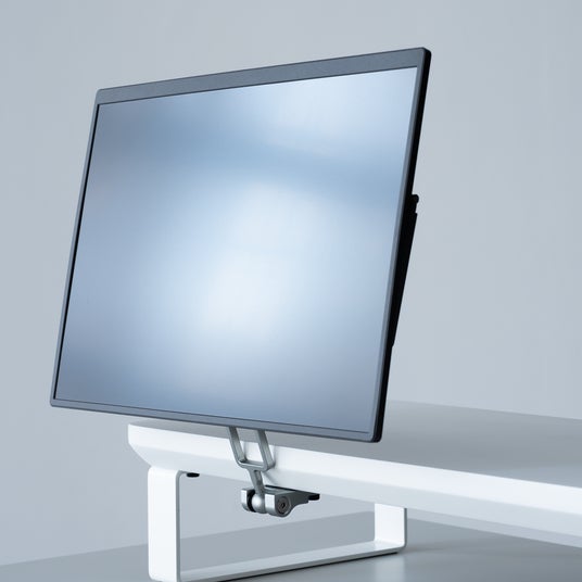 加えて、可動式のアームは「ボール形状のジョイント」と「ヒンジ形状のジョイント」を組み合わせることで、可動域が非常に広く設計されています。座り位置にあわせてデバイスの向きや角度を微調整したい、業務内容に応じてデバイスの設置方法を変えたいといったニーズにも応えるプロダクトです。