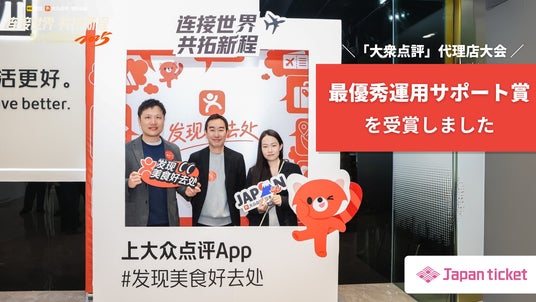 インバウンド集客向けeチケット管理システム「Japan ticket」を展開する株式会社Japanticket(本社:東京都渋谷区、代表取締役:田中宏彰、以下、Japanticket)は、2025年1月に中国・上海で行われた「大衆点評」の海外代理店大会にて、2年連続となる「最優秀運用サポート賞」を受賞したことをお知らせいたします。