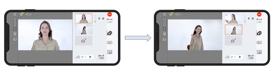 同一のWi-Fi下にある最大3台のiPhoneやiPadを、PCなどの機材や複雑な配線を使用せず接続することができ、ワンタッチで入力映像の切り替えが可能です。また、ワイヤレスでの接続により撮影機材を自由な位置に配置できるため、効果的なアングルからの撮影も可能です。さらに、秒数を指定して自動で画面の切り替えを設定することができ(※4)、ワンオペレーションでの撮影時に操作ができない場合などにおいても、ライブ配信プラットフォームを通して変化のある配信映像を実現します。