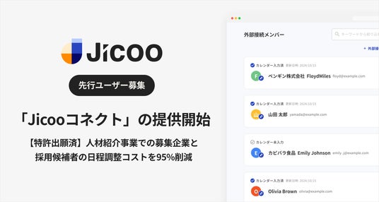チームを効率化する予約プラットフォーム「Jicoo」を運営するジクー株式会社(本社:東京都台東区、代表取締役社長:鈴木真一郎、以下「Jicoo」)は、人材紹介業など社外の人を含めた3者間、かつ複数回の日程調整を1つの予約ページURLを共有するだけで自動化できる新技術(特許出願済)を含んだ「Jicooコネクト」の提供を開始しました。あわせて、先行ユーザーとなる企業の募集を開始致しました。