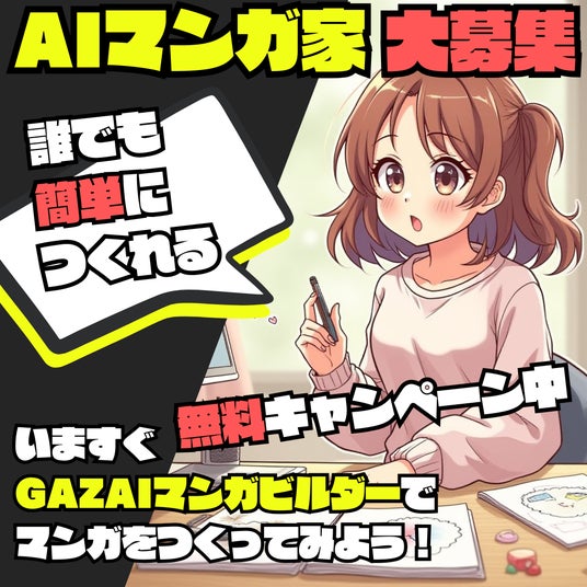 株式会社GAZAI(本社:東京都渋谷区、代表取締役:一岡亮大、以下「当社」)は、生成AIプラットフォーム「GAZAI」(https://www.gazai.ai/ja-JP)にて、1月23日(木)10時~2月4日(火)23時59分迄、AIマンガ家発掘キャンペーンを実施致します。