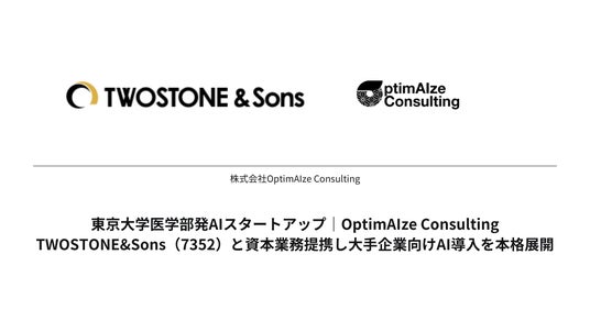 東京大学医学部発AIスタートアップ「OptimAIze Consulting」、TWOSTONE&Sons(7352)と資本業務提携し大手企業向けAI導入を本格展開