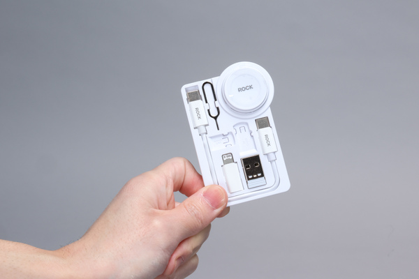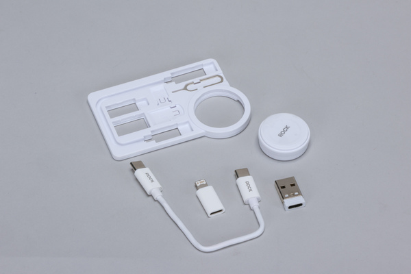 Rock L14の最大の魅力は、カードサイズのコンパクト設計であること。ケーブルや変換アダプターをひとまとめに収納できるので、バッグの中でバラバラにならず、ポケットにもスッと入ります。ケーブルポーチ不要で、持ち運びのストレスを大幅に減らしてくれます。