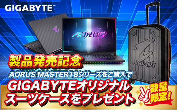 GIGABYTE、日本市場向け公式直販サイト開設!AORUS MASTER 18シリーズ購入で限定オリジナルスーツケースがもらえるキャンペーン実施中