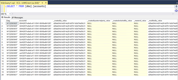フロー実行後にSQL Server 側のデータを確認すると、Dynamics 365 Salesのaccountsテーブルの内容が連携されていることを確認出来ます。