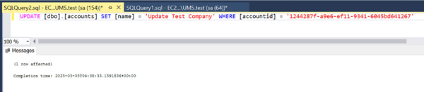 Dynamics 365 からSQLServer に連携したデータを更新します。今回は[name]カラムを更新します。