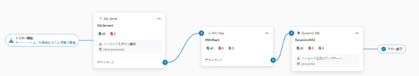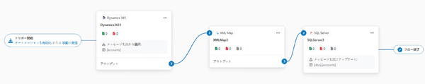 「Dynamics 365 コネクタ」と「SQL Server コネクタ」の設定が完了したら、次は「XMLMapコネクタ」を構成します。