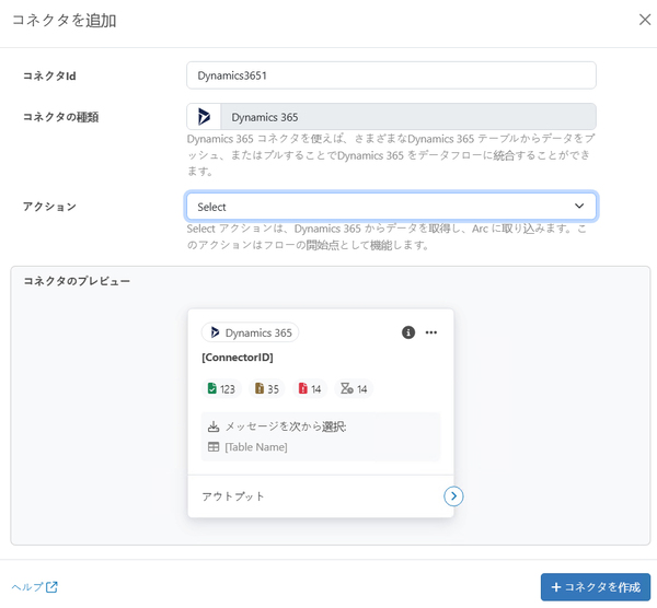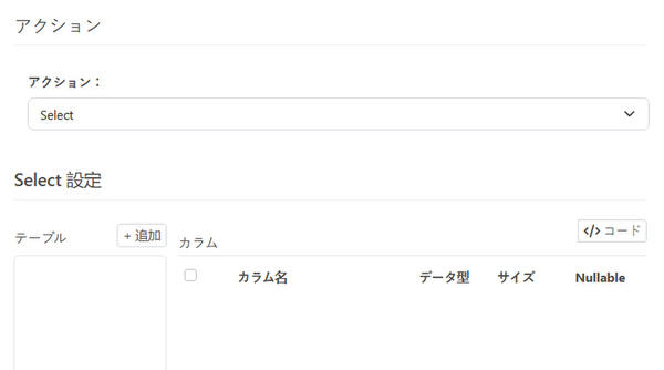今回は起点のコネクタとなるため「Selectアクション」を選択して、コネクタを作成します。
