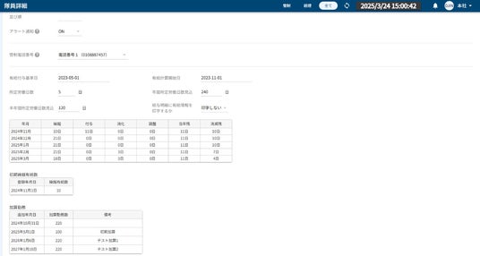 既に有給休暇運用を開始している警備会社に対応するため、初期繰越有休数、加算勤務数を設定し、計算ができます。