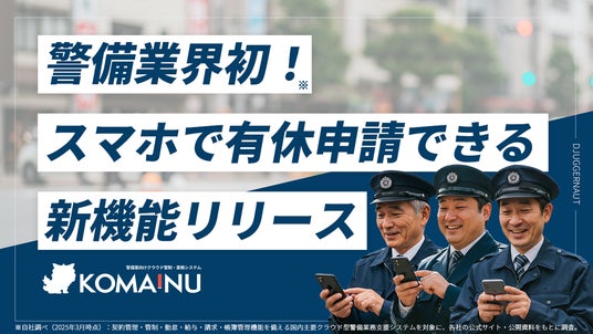 【警備業DX】「KOMAINU」スマホで有休申請を実現!業界に先駆けて新機能をリリース