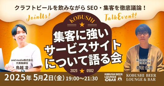 渋谷のマーケター&起業家コミュニティを運営するKOBUSHI MARKETING合同会社(東京都渋谷区、代表:井上裕介)は、2025年5月2日(金)19:00~ Lily 香取佑亮氏とandmedia 鳥越凌氏をゲストに迎え、SEO・集客を徹底に議論する飲み会イベントを開催すると発表した。