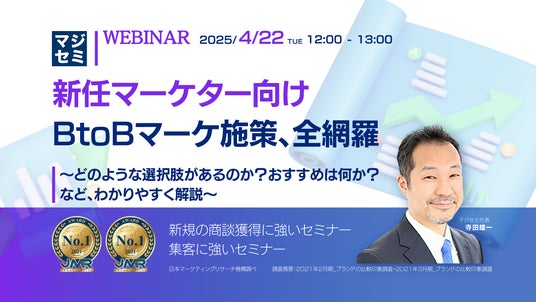 マジセミ株式会社は「【新任マーケター向け】BtoBマーケ施策、全網羅」というテーマのウェビナーを開催します。