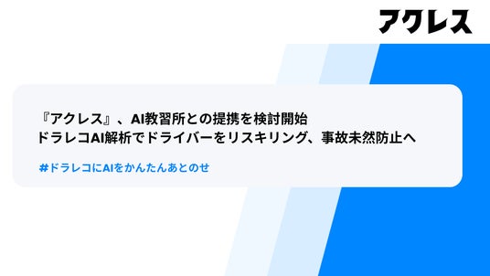 Teatis Inc.(本社:米国デラウェア州、代表取締役社長:高頭博志、以下「ティーティス」)は、AI教習所株式会社(以下「AI教習所」)と業務提携に向けた検討を開始したことを発表いたします。本件は、ティーティスのドライブレコーダーAI解析サービス『アクレス』と、AI教習所の運転教育支援サービス『AI教習システム』を連携させ、事故の未然防止を目指すものです。