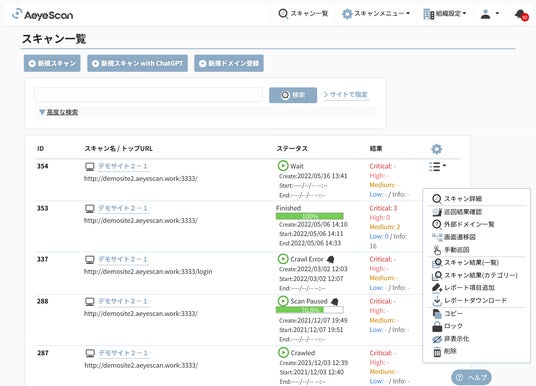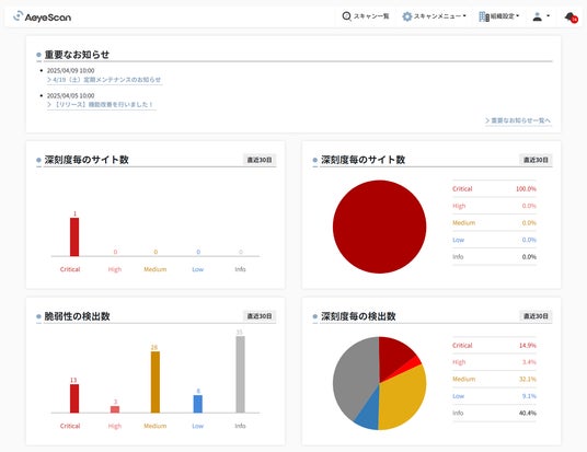 クラウド型Webアプリケーション脆弱性診断ツール「AeyeScan」を提供する株式会社エーアイセキュリティラボは 2025年4月12日(土)、「AeyeScan」のUIデザイン変更を実施いたしました。