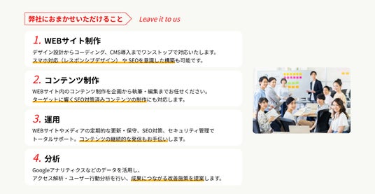 - 制作や運用を一部任せたいが、信頼できる外部パートナーがいない