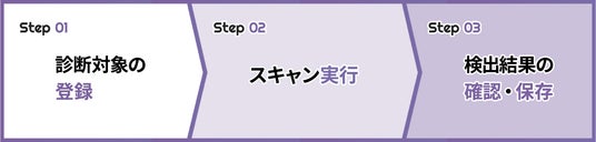 シンプルな3ステップにより、脆弱性診断のハードルを大きく下げ、誰でもスピーディに診断を行える環境を提供します。