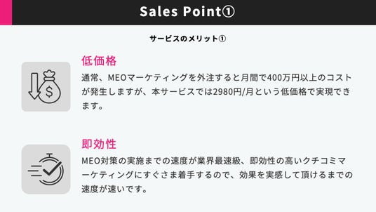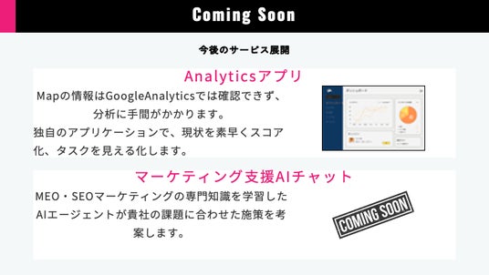 本サービスは、このような課題を解決するため、月額2,980円(税込)という導入しやすい価格設定で、専門家によるMEO対策コンサルティングを提供します。