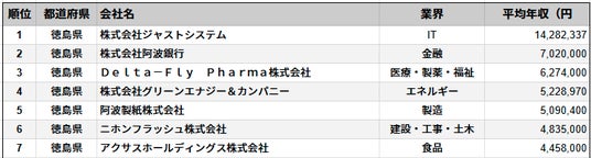 【2025年版】徳島県の上場企業・平均年収ランキングを公開!/SalesNow DBレポート