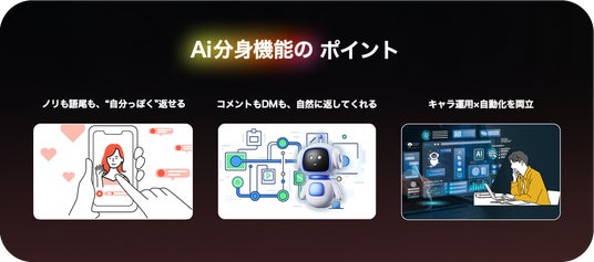 今回追加された“分身AI”機能により、単なるコメントやDM返信の自動化にとどまらず、“あなたらしさ”や“ブランドらしさ”を反映したキャラクター運用まで可能になりました。